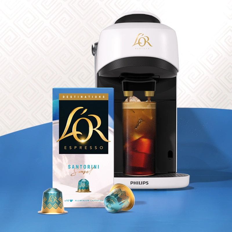 Les capsules Santorini Sunset, offrent un café onctueux et raffiné aussi bon chaud que froid